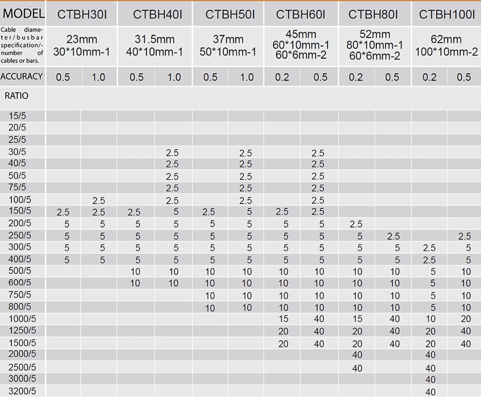 CTBHI series low-voltage current transformers are mainly used in low-voltage distribution cabinets to transform the current of cables or copper bars. The general BHI series products are both for cables and copper bars. The round holes can be used on cables, and the rectangular windows can also be installed on copper bars.