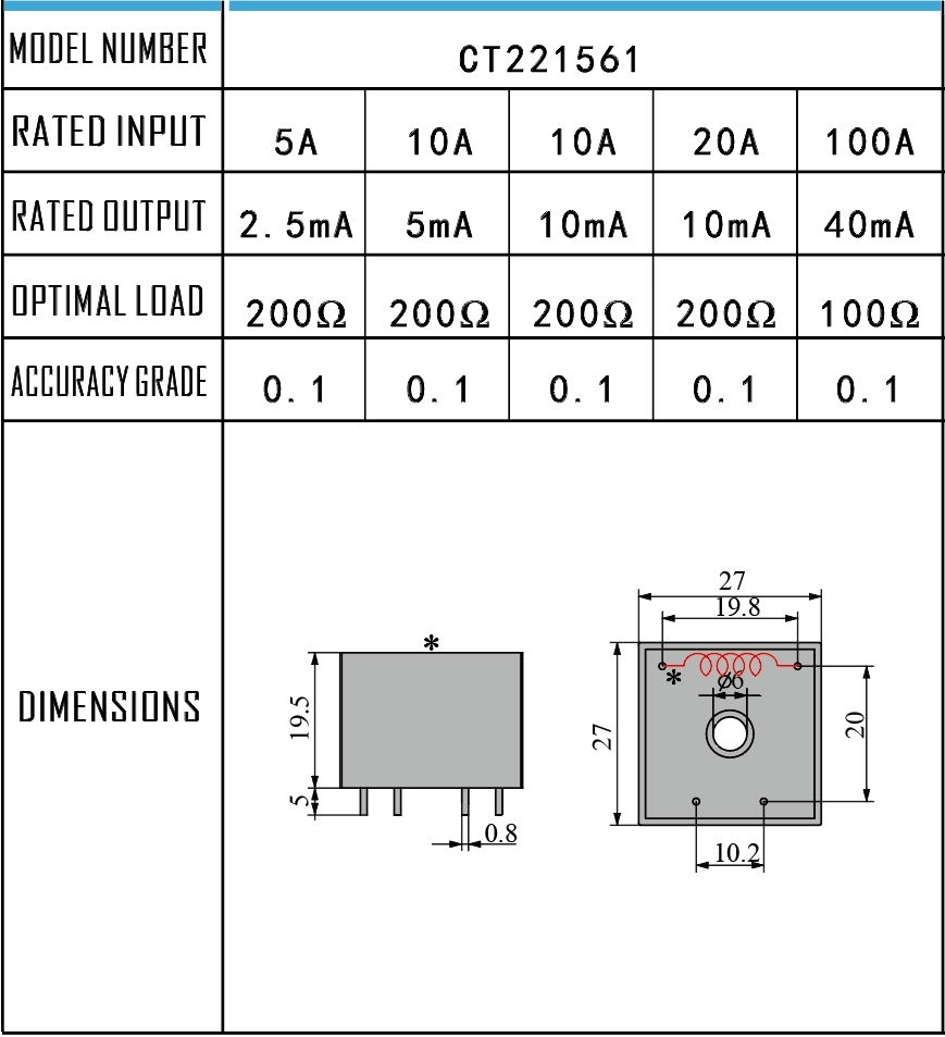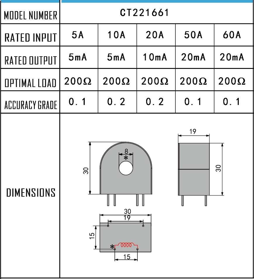 This series of products is small in size, high in precision, small in phase shift, and easy to use. It can accurately convert and isolate current signals and is mainly used in current, power and electric energy detection equipment or electric measuring instruments; at the same time, some products can use special processes to reach 10 times or even 20 times the overcurrent requirements, and can be used in power protection equipment.
