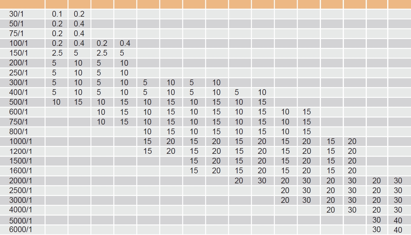 技術(shù)參數(shù)對照表: