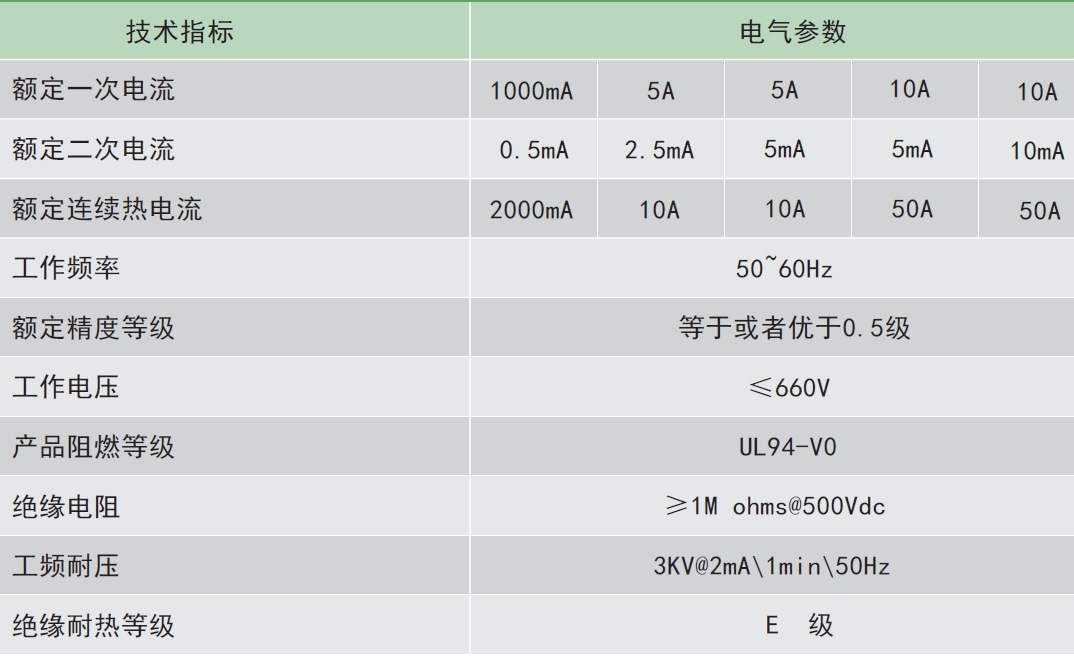 剩余電流互感器通過相應(yīng)正弦交流電流時(shí),其輸出采樣值電壓應(yīng)滿足下表中的要求。