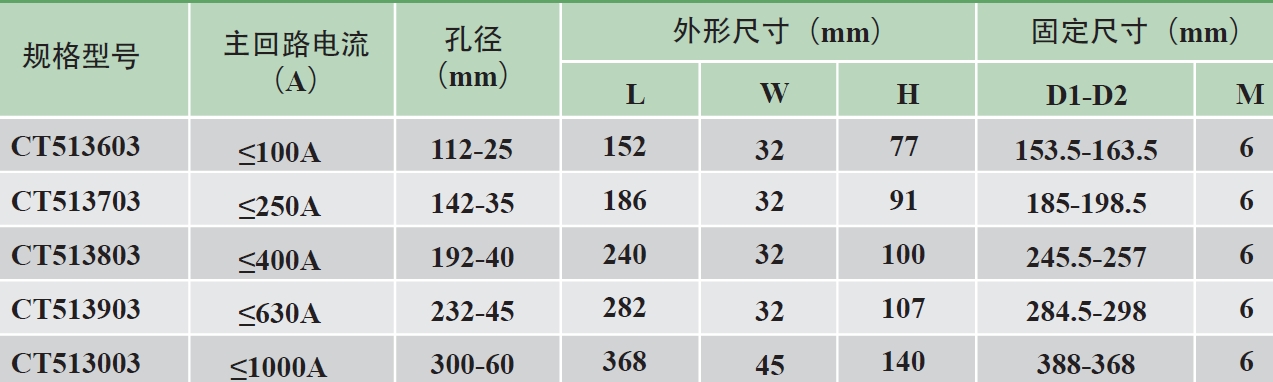 513矩形系列剩余電流互感器主要用在380V、660V等低壓配電柜、或者密度比較大的抽屜柜內(nèi),對(duì)相應(yīng)回路的安裝節(jié)點(diǎn)處的剩余電流進(jìn)行持續(xù)的檢測、監(jiān)控之用。513矩形系列包含5個(gè)規(guī)格,適用于母排總寬度在300mm以內(nèi)的回路中,基本可以滿足1000A以下配電回路的所有剩余電流的檢測。