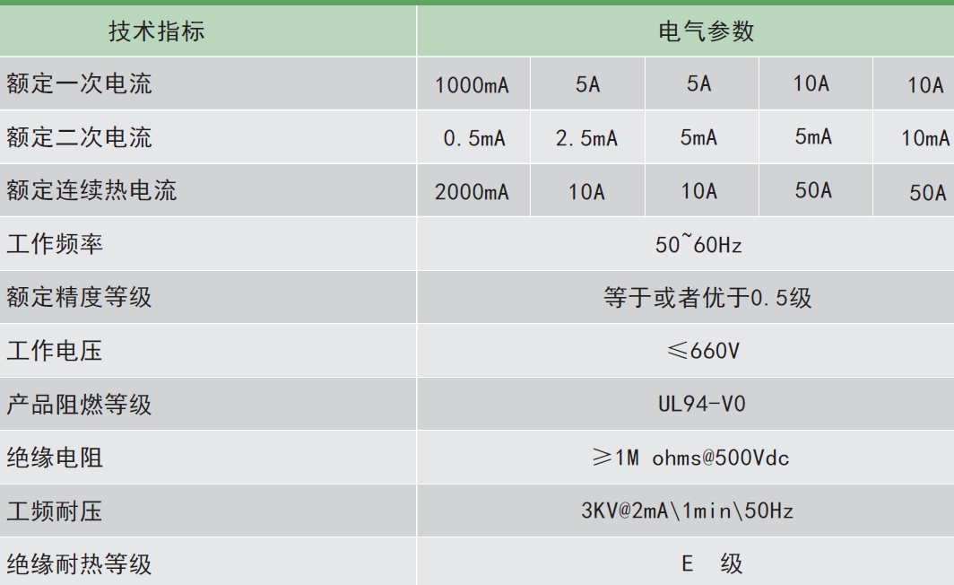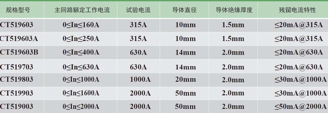 剩余電流互感器通過相應(yīng)正弦交流電流時(shí),其輸出采樣值電壓應(yīng)滿足下表中的要求。