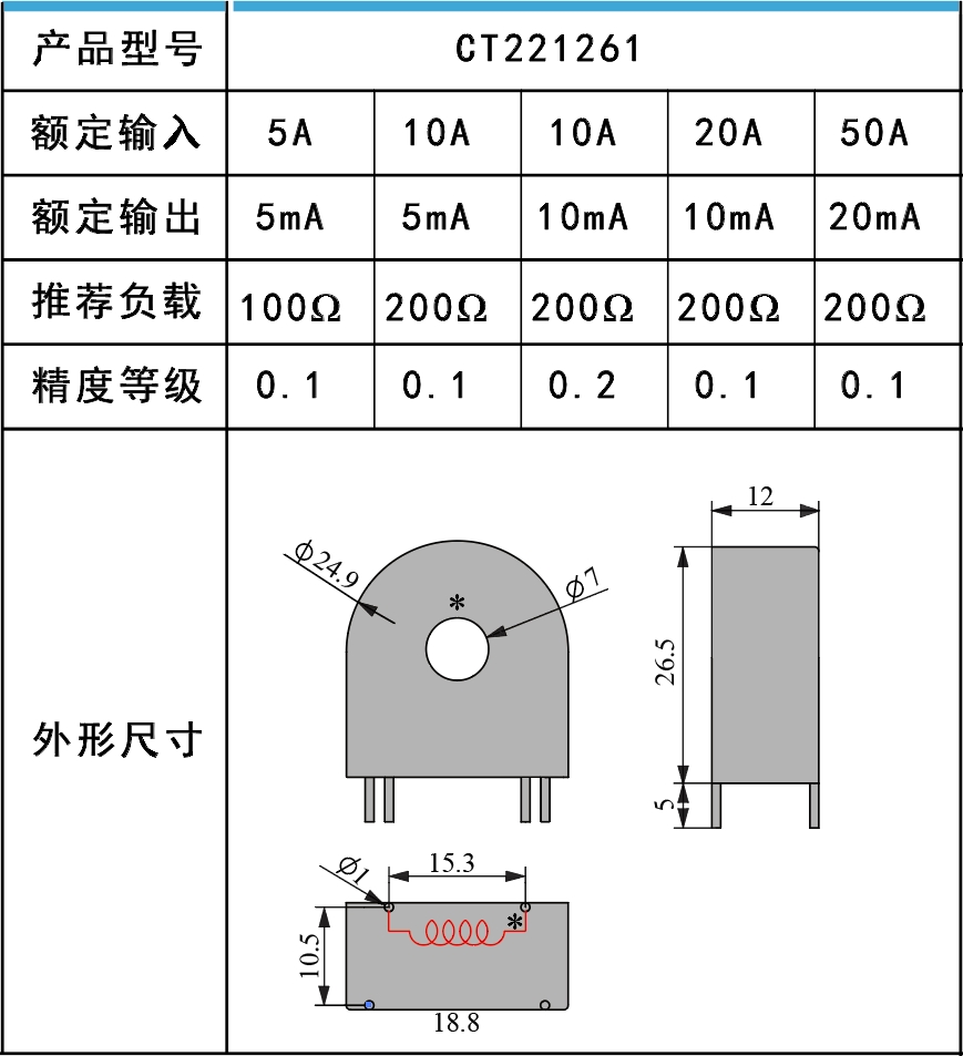 微型電流互感器用于將交流電流信號按比例變換為更低電平的交流電流或電壓信號。